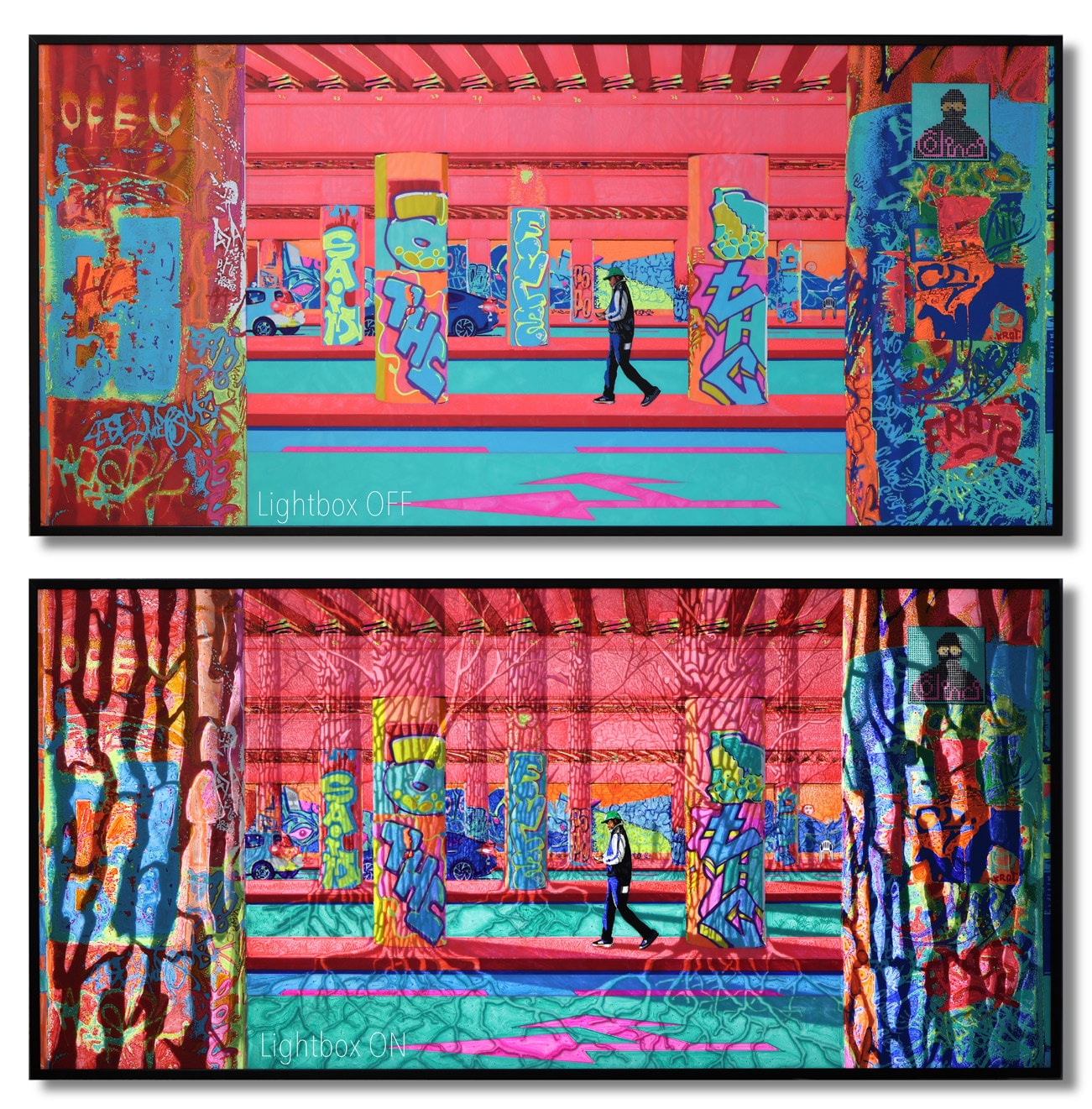 For the international art series Aisthetikos by Colinci, we created tailor-made lightboxes that bring his works’ unique effect to life: only when illuminated does the second layer of motifs within his art reveal itself.